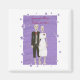 Pintura divertida de dois esqueletos, noiva e noiva, com espaço modelo para nomes e datas, e uma borda de estrelas roxas, impressas em ímãs. Procurar amostragem de produto correspondente: