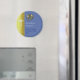 Este é um incrível ímã de arte azul e ouro fino com uma bela cruz brilhante.