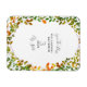 Um casamento elegante, exceto o convite de data que inclui a ilustração de borda das folhas verdes e laranja sobre um fundo branco. Procure por convites de casamento e outros itens de coordenação na Paperie de Jill.