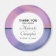 Um obrigado de casamento, seu imã com um na moda moderno. Cores cor-de-rosa e roxo girando em torno de criar um efeito elegante de gradiente. Um círculo por cima com sua dentro de texto.