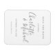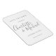 Com nomes de estilo de assinatura, este ímã de salvar a data cinza e branco elegante pode ser personalizado com as informações do seu dia especial de casamento em letras cinzas chiques. Criado por Thisisnotme©