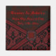 Aproveite um casamento gótico romântico com um padrão batik preto em vermelho com uma renda parecida com uma corda e um botão tipo gema quadrada. Perfeito por adicionar um monograma.