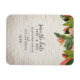 Um casamento salve o ímã de datas que apresenta uma imagem de flores tropicais e folhas de palma sobre um fundo branco de tijolos.