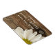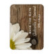 Ponha um tom casual, mas clássico, para seus futuros núpcias com a encantadora Margarida Branca e Casamento do País da Madeira Barn Salvem o Magneto Flexível da Data. Este casamento de estilo fazendeiro ocidental rústico e personalizado mantém a data do ímã dobrável com uma fotografia floral quase fechada de uma flor margarida branca com um fundo de madeira marrom e curada.