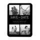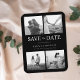 Crie seu próprio casamento preto-e-branco, salve os ímãs de data com 4 de suas fotos favoritas. Design de tipografia moderna com uma simples colagem de 4 fotos.