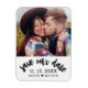 Anuncie seu noivado de casamento para sua família e amigos com essa imã salve a data personalizada moderna. Este design minimalista mostra sua foto na frente com as palavras "Salve nossa Data" com a data e seus nomes para personalizar em letras pretas a tipografia em branco. Parabéns pelo seu noivado e melhores votos para o seu casamento! Desenhado pela artista ©Susan Coffey.