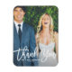 Celebre seu amor e mostre gratidão com nosso obrigado de casamento de fotos personalizável, seu imã! Essa única manutenção é perfeita para lembrar seus entes queridos de seu dia especial enquanto expressava seus obrigados sentidos de uma forma memorável. Apresenta caligrafia rustica branca. Personalize-o adicionando seus detalhes de casamento. Este obrigado fotográfico que o seu ímã também está disponível em outros estoques de cartão. Faça seus agradecimentos memoráveis com um obrigado personalizado de casamento, seu imã. Peça o seu hoje e deixe seus entes queridos lembrarem a alegria do seu dia especial toda vez que eles chegarem para a geladeira!