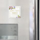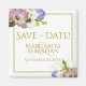Este magnata de geladeira vai facilitar aos seus convidados lembrar-se da data do seu próximo casamento. O elegante texto dourado diz: Salve a data com os nomes do casal e a data do casamento. A design bonito apresenta aglomerados de flores de primavera em cada canto com rosas cor-de-rosa, hydrangea roxa, orquídeas brancas e lírios-da-índia.
