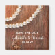 Personalize o casal, ainda que clássico, de Pérolas Russas e Casamento de Madeira Barn Salve o Magnet da Praça da Data com os nomes pessoais da noiva e do noivo e sua data de cerimônia de casamento. Esse encantador costume de fazenda ocidental nupcial mantém o ímã de data com uma fotografia escura de um colar branco de pérolas e madeira de celeiro marrom com punho enferrujado.
