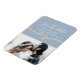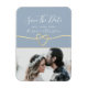 Simples, minimalista, escritura moderna, elegante casamento azul empoeirado salve o ímã de convite de data com corda falsa de ouro e foto.