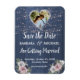 Esta bela aquarela Rústica Romântica Wood Twinkle Lights Floral Imã salve a data apresenta um fundo azul de madeira ardente com flores cor-de-rosa e branca, com apenas um toque de púrpura, realçado por uma foto da noiva e do noivo. Os toques de caligrafia são um acompanhamento perfeito das lindas flores. Uma escolha design para dar o tom para a sua celebração de casamento. Para qualquer pergunta sobre design ou personalização adicional e/ou itens correspondentes, basta enviar um e-mail para charmdesignstudio@rcn.com e teremos todo o prazer em ajudar. Exibir o link de coleta nesta página para ver outras partes da coleção, com mais a serem seguidas quando solicitado.