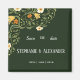 Um livro verde para salvar o ímã de casamento para enviar aos seus amigos e familiares anunciando sua data de casamento futura. O design consiste em uma imagem floral decorativa de plantas escaladoras e vinhas fluentes com pequenas flores douradas, laranja e brancas. A data, noiva e os nomes do noivo podem ser personalizados muito facilmente nas opções.