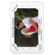 Design apresenta a foto que você fornece como design principal. Os cantos da foto são cortados para se parecer com uma imagem antiga à sua volta. Texto totalmente personalizável permite que você diga exatamente o que você quer anunciar seu grande dia! O monograma do casal é exibido ao lado da imagem de uma cruz e dentro de anéis de casamento unidos. Formato tradicional para um cartão "Salvar a Data", o design inclui cabeçalho, data, nomes de noiva e noivo e cidade/estado da cerimônia. Projetado para coordenar com a "Suíte de Casamento Monograma Católico Tradicional".