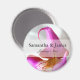 Magneta de casamento orquídea roxa e branca atrativa personalizada com seus nomes e data.