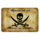 Como um "salve a data" ou um presente de lembrança para os membros da festa de casamento, um ímã flexível com um clássico Jolly Roger com modelos para a noiva e o noivo e a data do casamento.