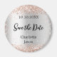 Uma Imã salve a data para o seu casamento. Um fundo com aparência de prata falsa, texto preto. Decorado com rosa dourado confetti. Personalize e adicione seus nomes e data de casamento.