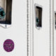 Casamento simples, elegante e roxo marmoreado salve o ímã de convite de data com um roteiro de ouro moderno.