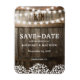 Gipsófila rústica corda de luzes casamento save the date ímã de geladeira com fundo de barril de carvalho de celeiro country, luzes cintilantes, baby's breath, seu monograma e texto de casamento moderno. Encontre outros cartões de save the date de madeira para casamento em http://www.zazzle.com/special_stationery*