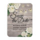 Casamento Salve os Modelos de Data Magnets - Flores de Hydrangea Hydrangea e Luzes de String em Fundo Russo de Madeira. Um Design Perfeito Para O Seu Grande Dia! Todo Estilo De Texto, Cores, Tamanhos Podem Ser Modificados Para Ajustado Das Suas Necessidades.