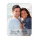 Salve o casamento dos ímãs de anúncio de data com uma foto de noivado vertical com o design de sobreposição "Salvar a data" em um script de cinza na moda. Personalize com uma foto de noivado e um texto personalizado.