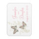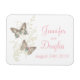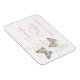Lindas borboletas de arte gráfica e mala espiral floral em rosa, creme, água e castanho. Uma ideia excelente para ajudar os convidados a se lembrarem do seu casamento. Personalize com seus nomes e data de casamento. Desenhos originais de tinta design e borboleta por Sarah Trett.