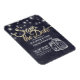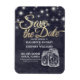 Casamento Salve os Modelos de Data Magnets - Elegante Mason Jar e as Luzes de String no fundo de Marinho Blue Floral Linen. Um Design perfeito para o seu grande dia. Todo estilo de texto, cores, tamanhos podem ser modificados para ajustado das suas necessidades!