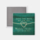 Caligrafia simples, moderna, casamento rústico, elegante, de madeira verde, salve o ímã de convite com corda de ouro falso.