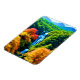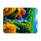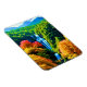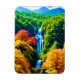 Uma serena cascata chinesa aninhada em meio à bela natureza, cercada por árvores e montanhas coloridas.