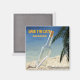 Imagem quadrada de guardar a data com a imagem de uma mensagem numa garrafa numa praia de areia branca e frondes de palma. Texto opcional. Veja o convite correspondente, confetti, bolsa de favoritos, etiqueta de favor, etiqueta, adesivo quadrado e papel de embalagem. Veja toda a coleção de ímãs de naufrágio nos TOUCHES ESPECIAIS | Seção Favoritos para festas.