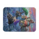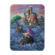 Se você ama sereias, então esta pintura é para você. Castelo de Sereias pintado por Traci Van Wagoner apresenta uma sereia com cabelos roxos à frente e uma sereia com cabelos verdes se bronzeando em ilhas rochosas enquanto outra sereia com cabelos rosa nada no oceano em frente a um castelo com um céu de pôr do sol roxo, laranja e amarelo atrás. Esta arte de fantasia linda e caprichosa faz um ótimo presente e uma decoração impressionante para o seu escritório ou casa.