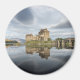Imagem redonda com o histórico castelo de Eilean Donan numa manhã tranquila com reflexo na água tranquila da costa oeste da Escócia, perto de Isle of Skye.