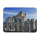 O Castelo dos Condes em Gand, Bélgica. Pintura do castelo medieval Gravensteen cercada por água.