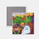 Magnet, com a pintura de animais de Louis Wain Master of Cat College (1860-1939). Um gato branco pensativo com olhos azuis impressionantes senta-se pesadamente ao lado de uma variedade vibrante de flores bonitas. A majestosa faculdade de gatos venta no fundo sob um céu rosa e azul. Um presente maravilhoso para amantes de gatos e arte inglesa.