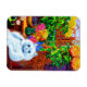 Magnet, com a pintura de animais de Louis Wain Master of Cat College (1860-1939). Um gato branco pensativo com olhos azuis impressionantes senta-se pesadamente ao lado de uma variedade vibrante de flores bonitas. A majestosa faculdade de gatos venta no fundo sob um céu rosa e azul. Um presente maravilhoso para amantes de gatos e arte inglesa.