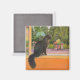 O gato da mesa senta-se na dentro de uma janela ainda olhando para o jardim.