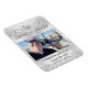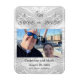 Católico Faux-Satin Monogrammed Save the Date design apresenta as iniciais da noiva e do noivo apresentadas juntas no centro superior com uma cruz em ambos os lados. Isto simboliza a união casal com Cristo e entre si. Sua foto é exibida como design principal. A parte traseira apresenta um lindo fundo faux-satin com a inicial do novo sobrenome casal largamente exibido no centro. Todo texto está em uma bela fonte prateada. Muito elegante.