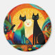 Abstract colorful artwork of two cats against a vibrant stylized background.