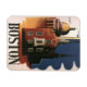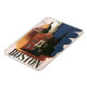 Ilustração antiga pôster de viagem Estados Unidos da América de Boston, Massachusetts com a Old State House (primeiro plano) e a New State House (fundo) que fica no topo de Beacon Hill, com vista para Boston Common. A Igreja do Norte é à direita, que é o local de onde partiu a famosa cavalgada da meia-noite de Paul Revere, seu sinal "Um se por terra e dois se por mar" avisando da invasão britânica.