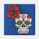 Ímãs podem ser divertidos, caprichosos e ter frases atraentes. Confira este ímã com uma caveira de açúcar colorida.