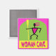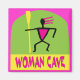 Se os homens tiverem a sua caverna masculina, aqui está um ímã para designar a caverna feminina da casa! Engraçada mulher das cavernas em verde, amarelo e rosa.