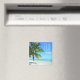 Íman de souvenir quadrado com caiaque amarelo sob palmeira pendurada numa praia de areia branca na ilha tropical de Fiji, com o texto: "Fiji".