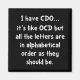 � eu tenho CDO � como TOC mas todas as letras estão em ordem alfabética como deveriam estar. � Veja este engraçado design personalizado em camisetas, camisas, canecas, pijamas, presentes e outros roupa.