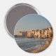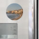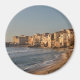 Imagem circular com a arquitetura típica das antigas casas construídas na praia do Mar Mediterrâneo, na cidade de Cefalu, na ilha da Sicília, em Itália.