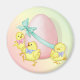 Pequenos Pintinhos dançantes com ovo e arco cor-de-rosa pastel. Design de pastel bonito perfeito para festividades de Páscoa e Primavera.