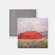 mostra o celeiro vermelho com íris roxos