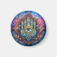 An artistic and detailed representation of the hand of Fatima, a powerful symbol of protection and good fortune, adorned with intricate designs and an all-seeing celestial eye.