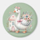 Um design de cottagecore caprichoso com um ganso branco gracioso adorrado com uma coroa de flores macios e pastel e um arco de gingham rosa, orgulhosamente ao lado de uma casa pastel inspirada em conto de fadas. As asas do ganso florescem com delicadas flores em tons de pincel, creme e azul, cercadas por ramos de folhas, borboletas, e sotaques encantadores que criam uma atmosfera rural sonhadora. Essa composição encantadora captura a essência da confortável casa de campo, misturando encanto rústico com beleza floral feminina num estilo lúdico e animador. Uma celebração perfeita da natureza, chorona e mágica do livro de histórias de eterno. A IA gerou trabalho de arte.