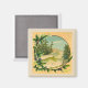 Imagem rústica vintage; vinheta circular com montanhas e coníferas com neve nos galhos cercados por um motivo floral.