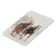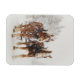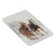 Um ímã flexível com uma fotografia à porta fechada, com uma equipe de 2 cavalos belgianos a puxar um trenó. Flocos de neve suavemente caindo com pinheiros cobertos de neve no fundo.