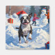 Íman Cena de Neve Festiva de Boston Terrier Christmas